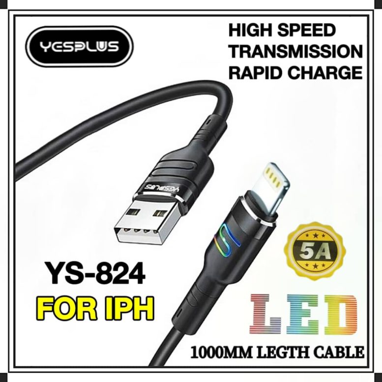 کابل شارژ USB به Lightning مدل YS-824 با قابلیت شارژ سریع مناسب برای انواع گوشیهای موبایل تبلت و دیگر دستگاههای مجهز به درگاه لایتنینگ می باشد. از این کابل برای شارژ و انتقال اطلاعات میان دستگاههای مختلف می توان استفاده کرد.