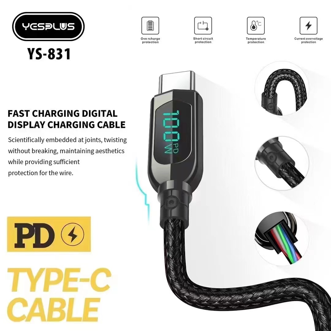 کابل شارژ دوسر Type-C مدل YS-831 با قابلیت شارژ سریع مناسب برای انواع گوشیهای موبایل تبلت و دیگر دستگاههای مجهز به درگاه تایپ سی می باشد. از این کابل برای شارژ و انتقال اطلاعات میان دستگاههای مختلف می توان استفاده کرد.