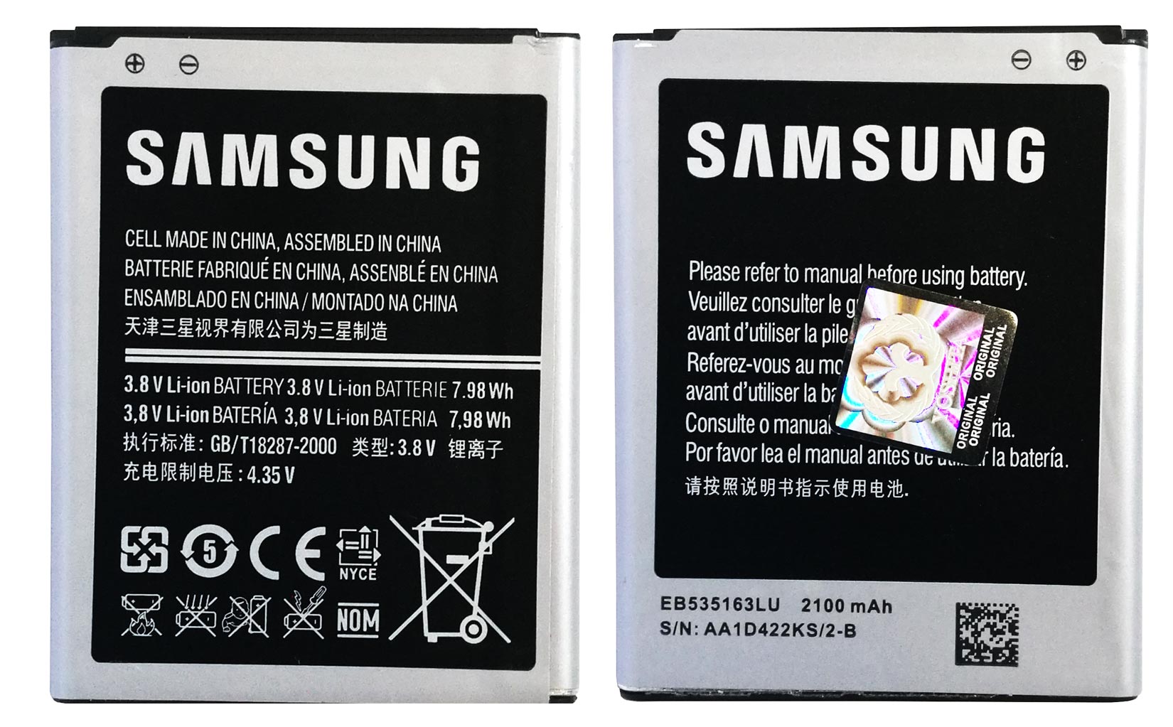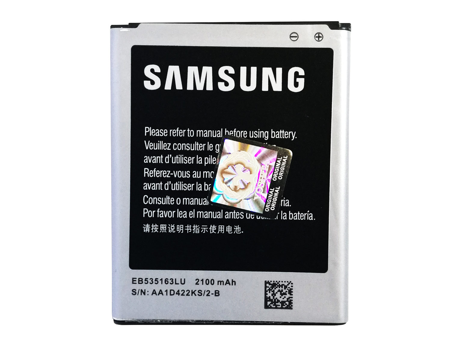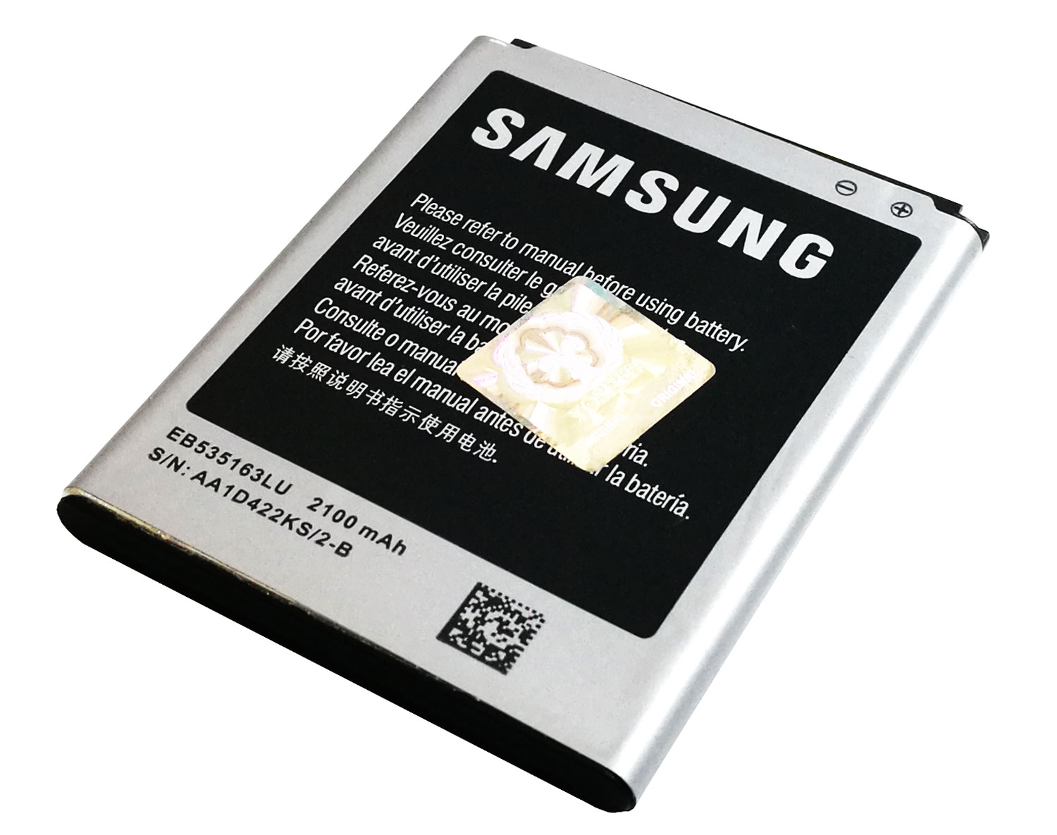 باتری اورجینال سامسونگ گلکسی Grand با عنوان شرکتی EB535163LU از کیفیت ساخت بالایی برخوردار بوده و برای مصرف کننده شش ماه گارانتی می شود. این باتری دارای ظرفیت 2100 میلی آمپر ساعت با ولتاژ 3.8 ولتی بوده و از نوع لیتیوم یونی می باشد.