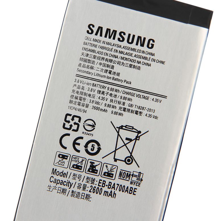 باتری اورجینال سامسونگ گلکسی A7 با عنوان شرکتی EB-BA700ABE از کیفیت ساخت بالایی برخوردار بوده و برای مصرف کننده شش ماه گارانتی می شود. این باتری دارای ظرفیت 2600 میلی آمپر ساعت با ولتاژ 3.8 ولتی بوده و از نوع لیتیوم یونی می باشد.
