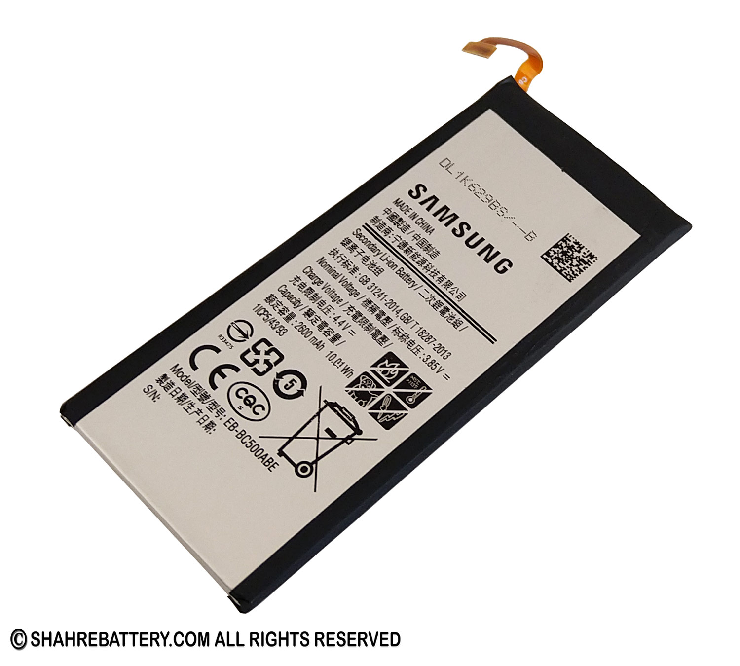 باتری اورجینال سامسونگ گلکسی C5 با عنوان شرکتی EB-BC500ABE از کیفیت ساخت بالایی برخوردار بوده و برای مصرف کننده شش ماه گارانتی می شود. این باتری دارای ظرفیت 2600 میلی آمپر ساعت با ولتاژ 3.85 ولتی بوده و از نوع لیتیوم یونی می باشد.