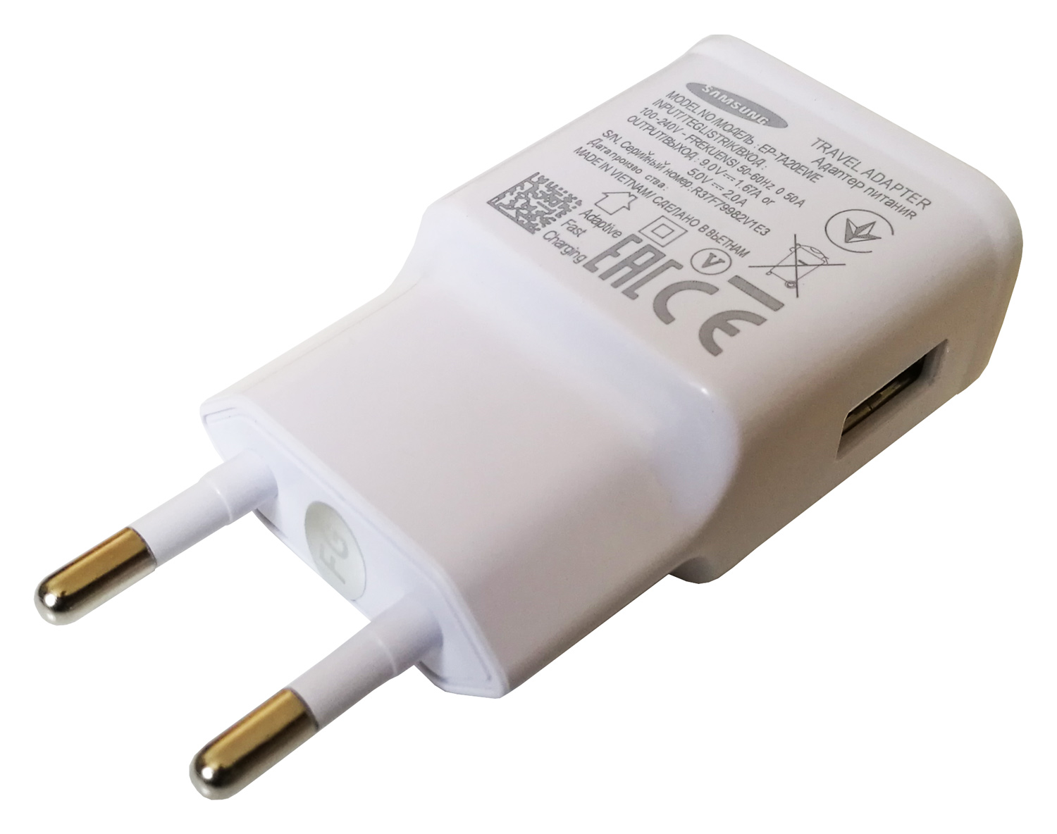 شارژر دیواری فست سامسونگ با درگاه USB و سازگار با تمام گوشی هایی که با درگاه میکرو شارژ می شوند. این آداپتور از تکنولوژی شارژ سریع پشتیبانی می کند بنابراین می توانید با استفاده از این کلگی گوشی های با قابلیت فست را چندین برابر زودتر از حالت معمول شارژ نمایید. شدت جریان خروجی این محصول 1.67 آمپر با ولتاژ 9 ولت برای فست و 5 ولت با جریان 2 آمپر برای شارژ معمولی می باشد. این شارژر همراه با کابل 1 متری بوده و از کیفیت ساخت بالایی برخوردار می باشد.