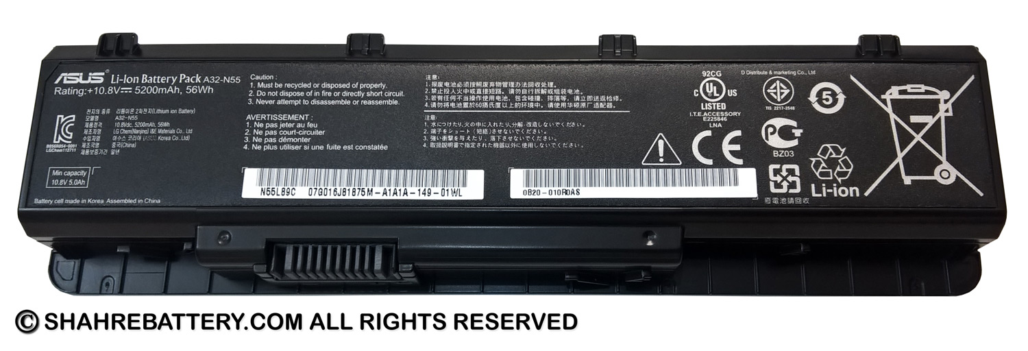 باتری اورجینال لپ تاپ ایسوس Asus N45 N55 N75 A32-N55Compatible Models