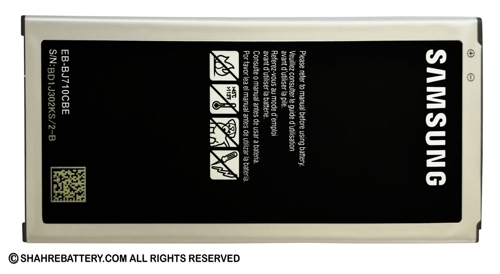 باتری اورجینال موبایل سامسونگ گلکسی J7 با عنوان شرکتی EB-BJ710CBC از کیفیت ساخت بالایی برخوردار بوده و برای مصرف کننده شش ماه گارانتی می شود. این باتری دارای ظرفیت 3300 میلی آمپر ساعت با ولتاژ 3.85 ولتی بوده و از نوع لیتیوم یونی می باشد.