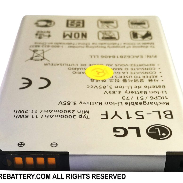 باتری اورجینال ال جی G4 با عنوان شرکتی BL-51YF از کیفیت ساخت بالایی برخوردار بوده و برای مصرف کننده شش ماه گارانتی می شود. این باتری دارای ظرفیت 3000 میلی آمپر ساعت با ولتاژ 3.85 ولتی بوده و از نوع لیتیوم یونی می باشد.