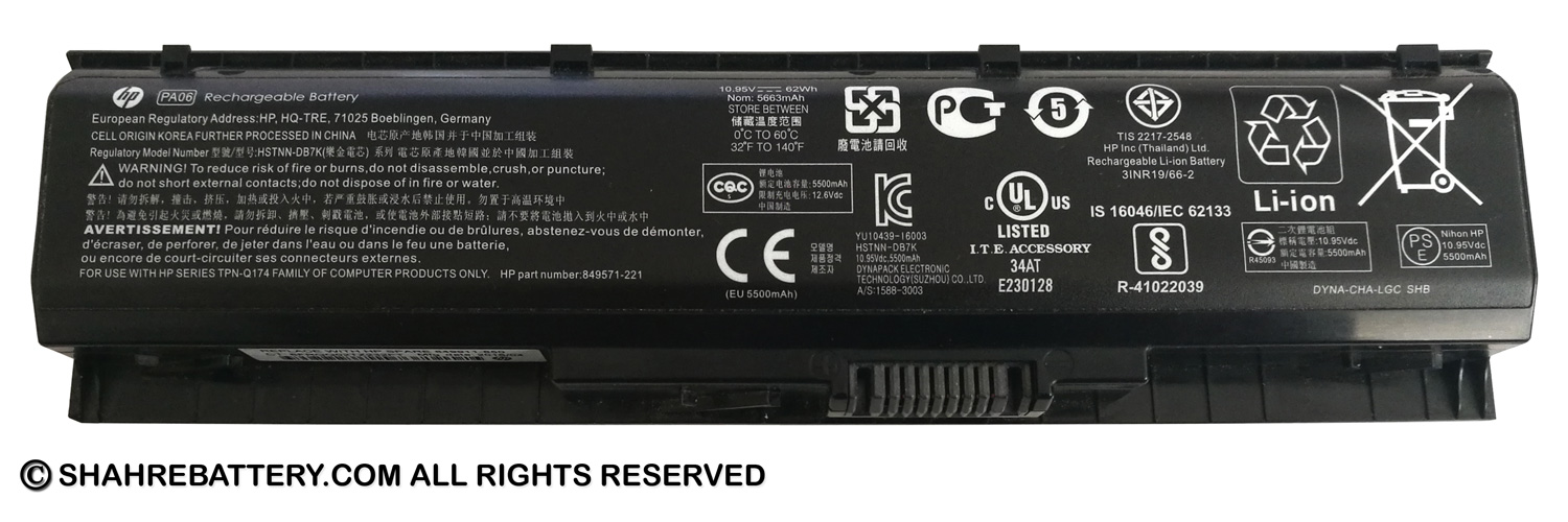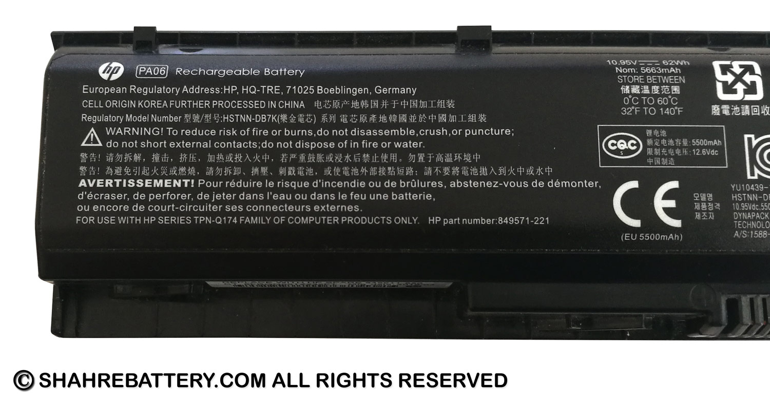 | پارت نامبر | HSTNN-DB7K, PA06, PA06062 |