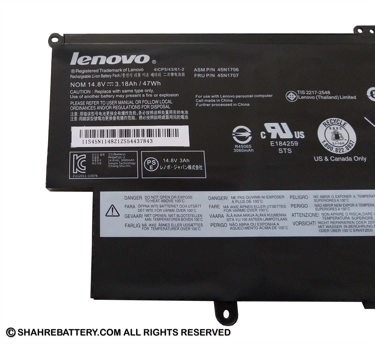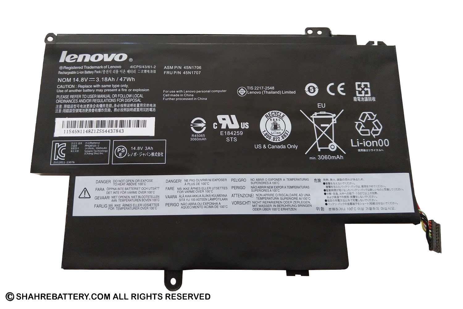 باتری اورجینال لپ تاپ لنوو Lenovo ThinkPad Yoga 12 45N1706Compatible Models