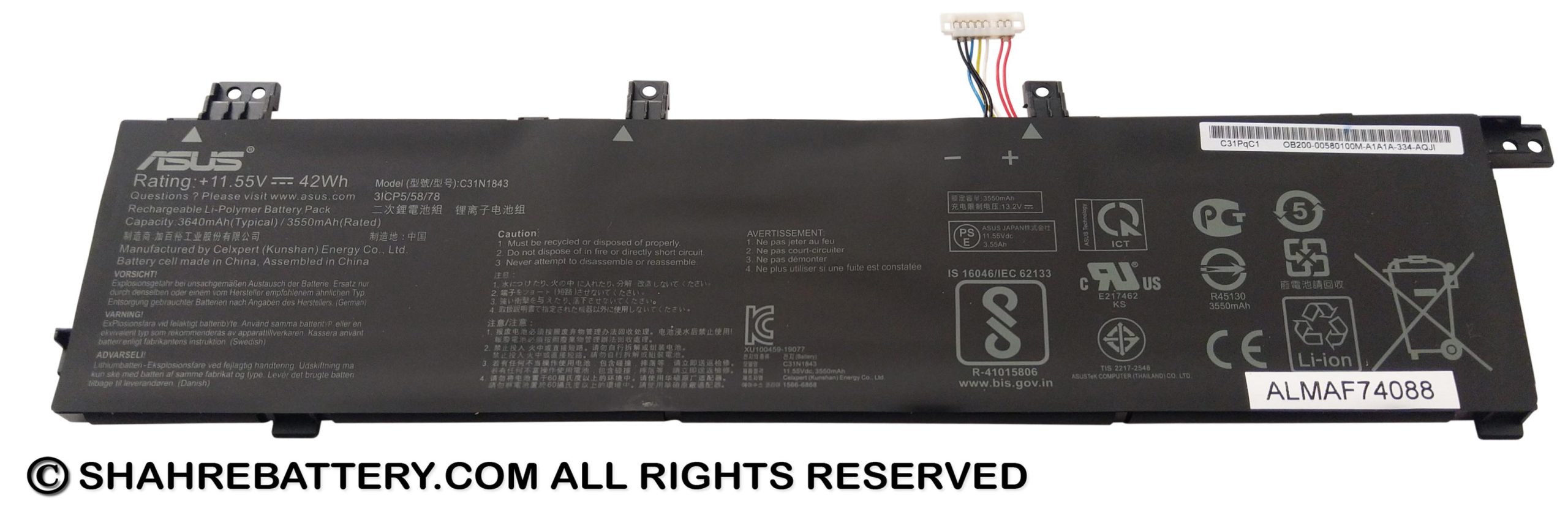Asus VivoBook S432 S532 C31N1843 Original Battery دسته بندی: باتری لپ تاپ، ایسوس، باتری لپ تاپ Asus
