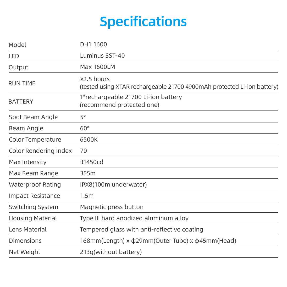 | مدل | XTAR Hunter DH1 1600 Lumens |